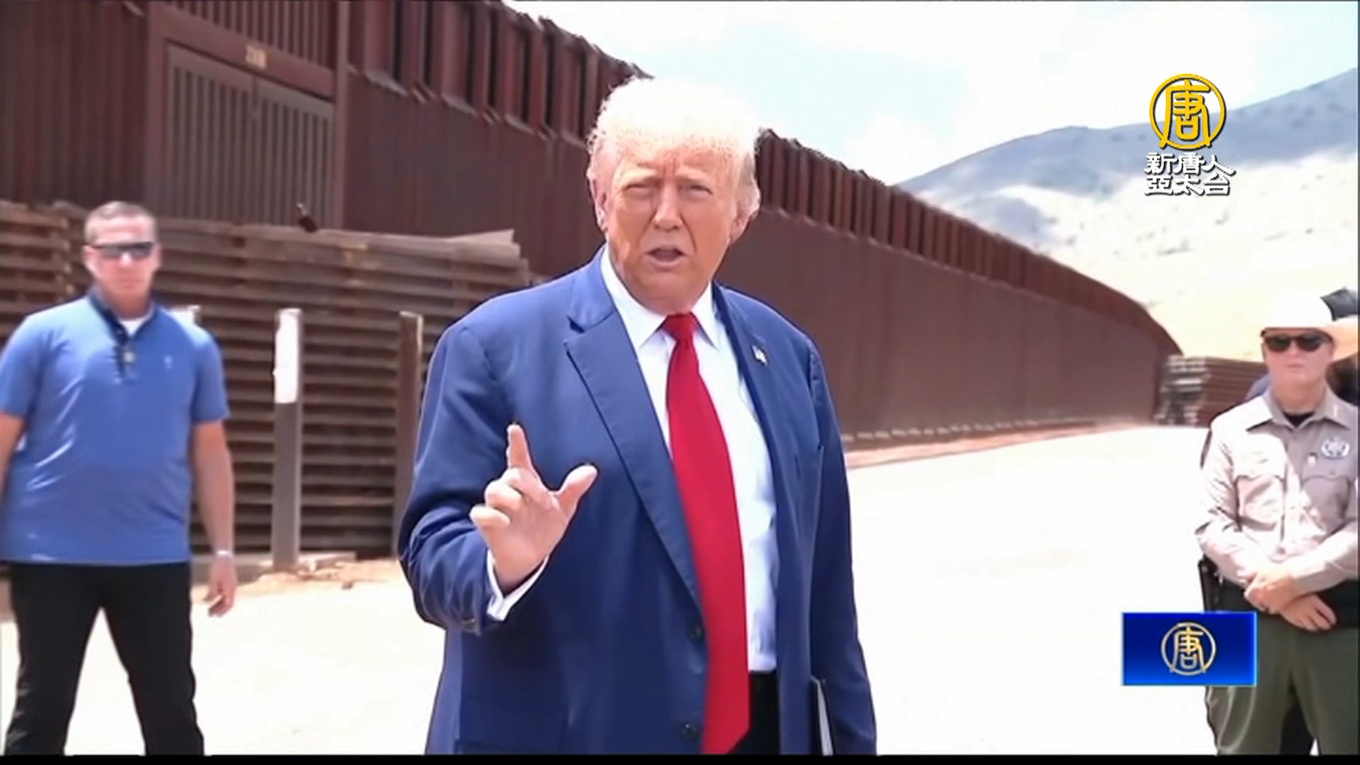 新唐人電視台記者 陶明:「在我們身後,就是美墨邊境,而這些邊境牆,正是川普在任內下令建造的。川普在週四表示,如果重返白宮,他將完成建邊境牆的工程,並大力打擊非法移民犯罪。」