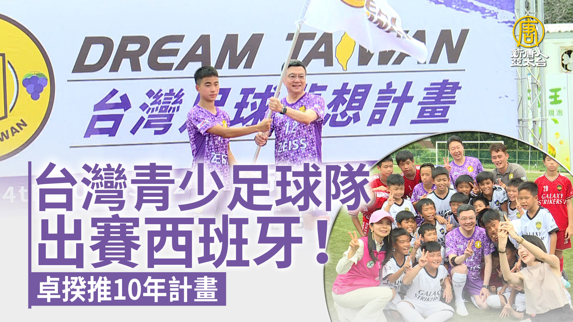 身著薰衣草紫及天空藍球衣,足球小將一字排開、蓄勢待發,錦旗上寫著大大的「Dream Taiwan」!經過層層選拔,來自全台灣各地,18名球員組成青少足球隊,將以「Dream Taiwan」之名,出賽西班牙Arnedo Cup青少足球賽。行政院長卓榮泰,更宣示「T足球」10年計畫。