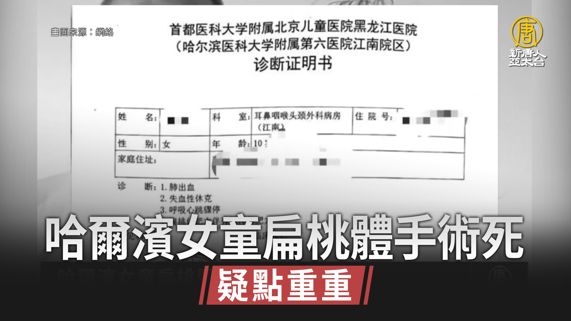 【新唐人亞太台 2024 年 08 月 24 日訊】日前,中國哈爾濱一名10歲女童,在醫院做扁桃體微創手術時,因肺出血死亡。由於院方所為疑點重重,家屬質疑醫院故意殺人,輿論則認為可能涉及器官活摘。