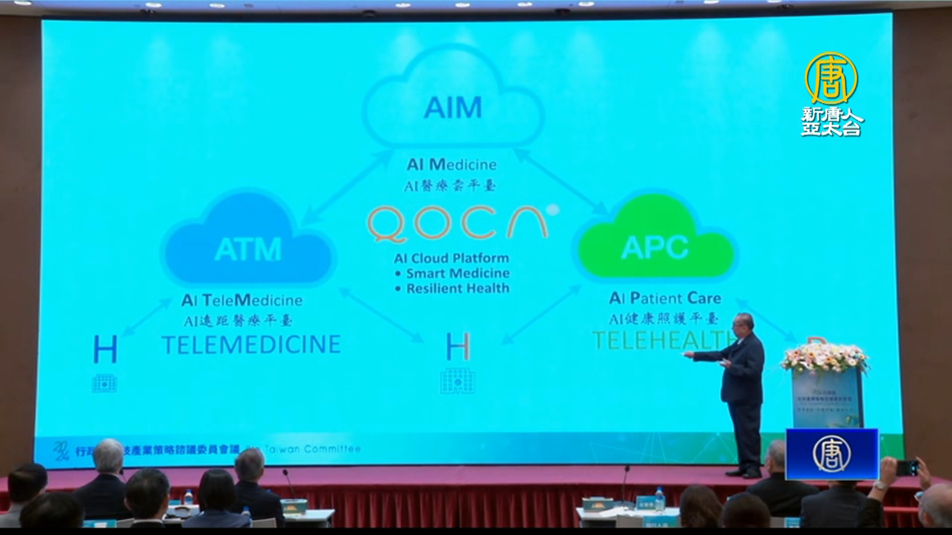 台灣代工大廠廣達,多年來也投身AI智慧醫療市場布局,推出醫療照護平台(QOCA),涵蓋AI醫療雲、遠距醫療、健康照護3大應用。產官界攜手強化台灣生技發展,中央明年編列1,466億科技發展預算,年增近15%。中華民國國科會主委 吳誠文:「我們善用我們的人工智慧的系統,能夠把各種各樣的醫療的服務,從醫療院所直接透過雲端人工智慧服務,就可以擴散到我們的家庭,我們的各行各業,來協助我們建構未來健康台灣。」