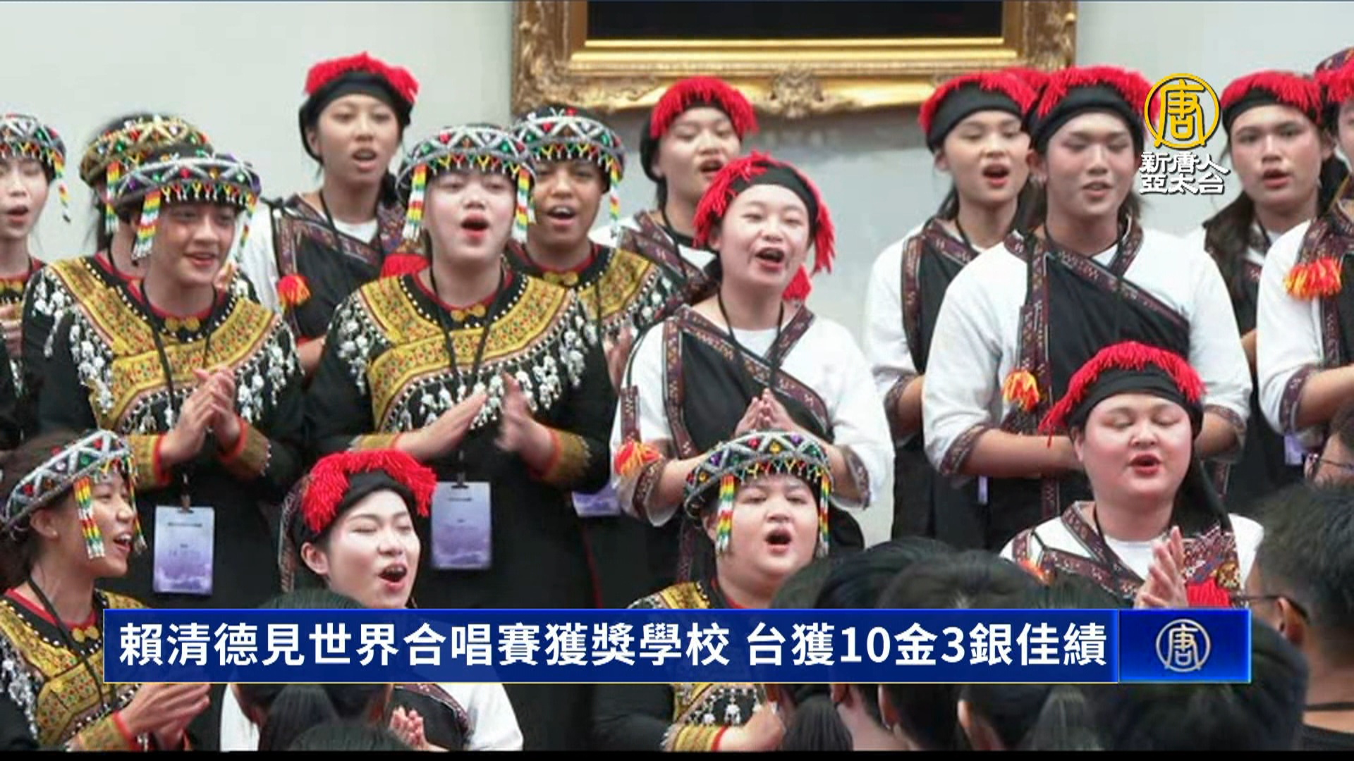 【新唐人亞太台 2024 年 08 月 27 日訊】歡迎回來。總統賴清德在執政百日這天,(27日)下午接見「2024紐西蘭世界合唱大賽」獲獎學校,在7月的比賽中,台灣共有9個合唱團體參賽,榮獲10金3銀的傲人佳績,賴總統也讚許他們用優美的歌聲讓世界看到台灣。