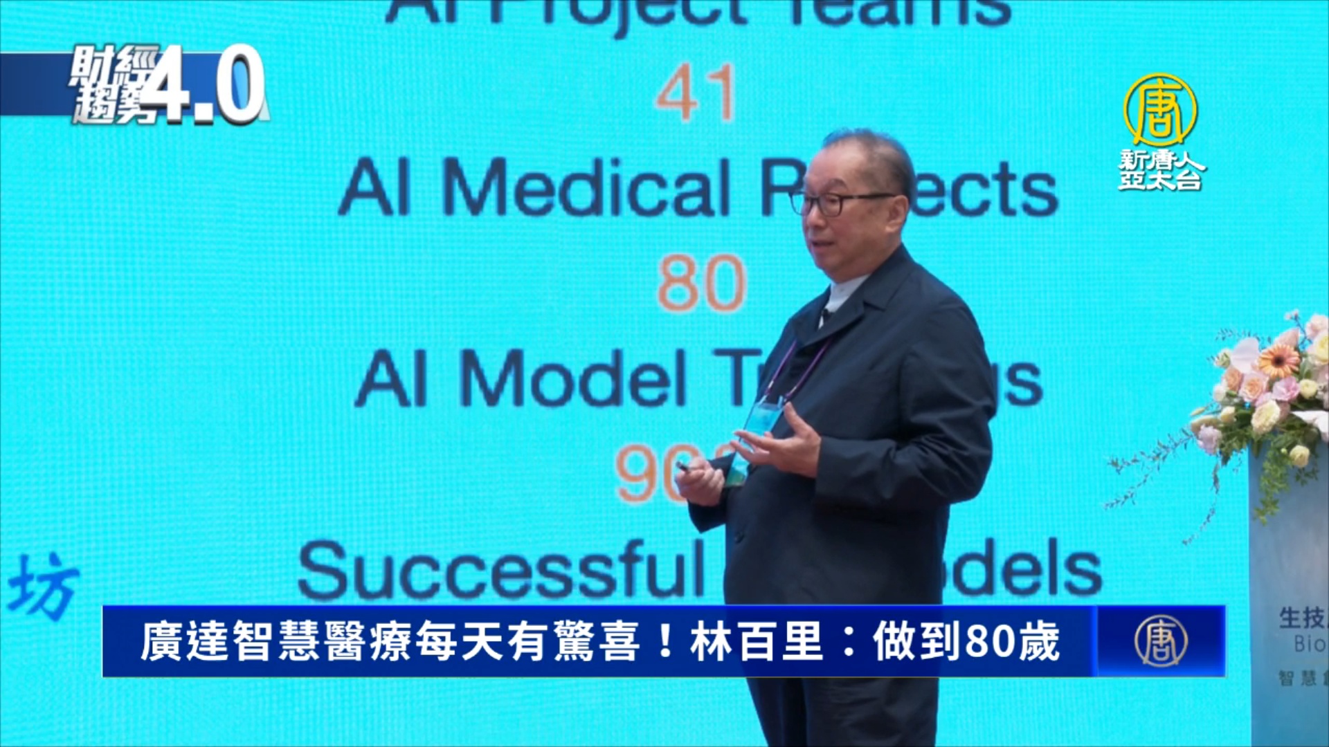【新唐人亞太台 2024 年 08 月 31 日訊】台灣BTC生技策略大會本週召開,重頭戲就是,廣達董事長林百里開幕演說,媒體高度關注,AI伺服器出貨進度之外,還有廣達早已布局多年的AI智慧醫療。林百里會上分享經驗,還幽默說,要在智慧醫療領域,做到80歲。