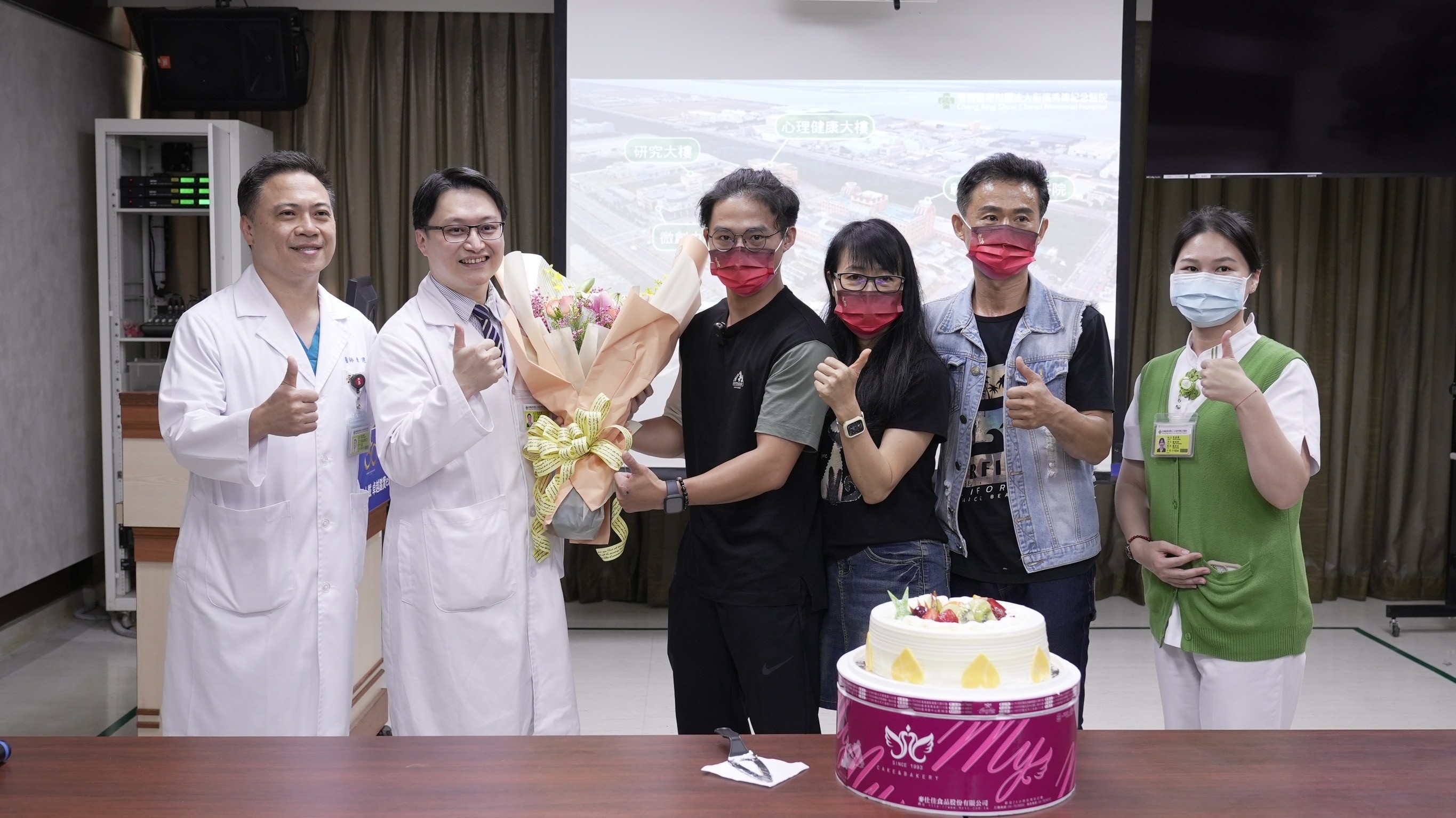 呂先生今天(9/2)回診,醫院特地準備了一個象徵重生的蛋糕,為呂先生舉行了簡單而溫馨的慶祝儀式。呂先生在父母的陪同下回到醫院,感謝張竣期主任及全體醫療團隊的辛苦付出。他表示:「在醫院的這段日子,我深刻體會到生命的脆弱,也更加感謝醫護人員的專業醫術,才讓我有機會再次擁抱家人,回歸正常生活,還能打我最愛的電動遊戲。」