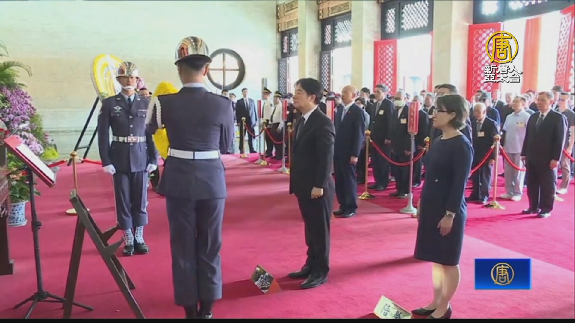 【新唐人亞太台 2024 年 09 月 03 日訊】今天是九三軍人節,總統賴清德上任首次主持秋祭忠烈殉職人員典禮,儀式在大直忠烈祠舉辦,包括副總統蕭美琴與立法院長韓國瑜、監察院長陳菊等官員出席。儀式在演奏國歌之後,由賴清德擔任主祭,向忠烈殉職人員牌位獻花,並由司儀朗誦祭文,全體人員行三鞠躬禮後結束。賴清德也逐一向在場遺族和軍方代表握手致意。