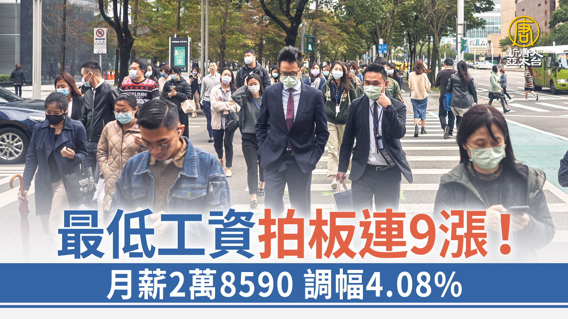 最低工資拍板連9漲!月薪2萬8590 調幅4.08%