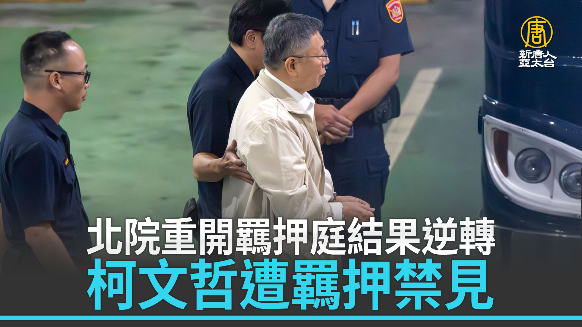 柯文哲雙手上銬,在法警戒護下走上囚車,從車道離去,前往土城看守所。二次羈押庭結果逆轉,柯文哲遭羈押禁見。
