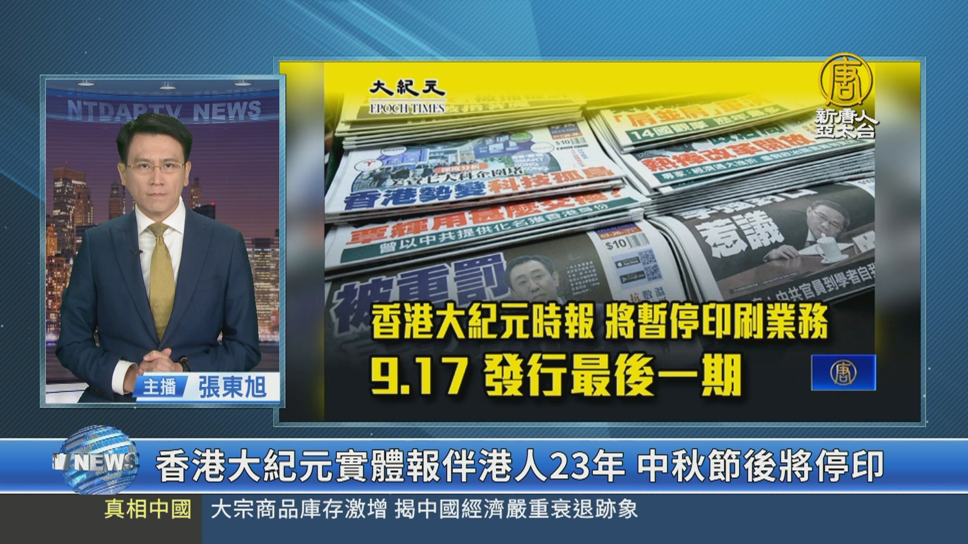 【新唐人亞太台 2024 年 09 月 06 日訊】再來看到,香港《大紀元時報》今天發出停印通知,9月17日中秋節發行最後一期紙本實體報紙。大紀元表示,因為印刷廠租約到期無法續約,再加上目前香港各種因素,《香港大紀元時報》決定,暫時停止印刷和日報報紙的發行。並指出,從2001年以來,香港大紀元的印刷版,陪伴了香港市民23年的時間。遺憾萬千,但絕不悲哀。即使大紀元報紙暫時停刊,但《香港大紀元》網站,將會繼續為香港而呼。