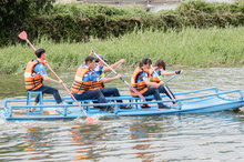 【新唐人亞太台 2024 年 09 月 08 日訊】嘉義縣鹿草鄉7日舉辦一年一度的涸魚文化季,重現傳統牽罟捕魚場景,重頭戲「埤頭堀」膠筏競速賽下午登場,今年加碼舉辦最佳造型票選,邀請隊伍參賽角逐獎金,除了可以觀賞刺激競賽,還能自備環保容器下水捕魚,現撈仔裝多少拿多少,全部都能免費帶回家。