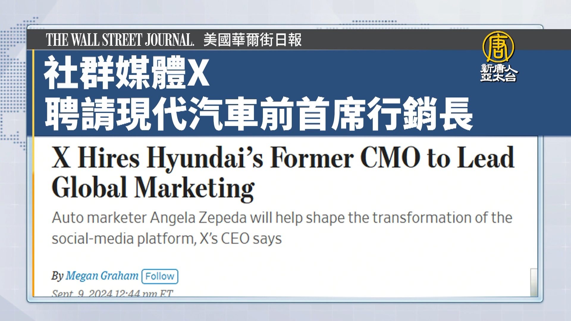 華爾街日報報導,社群媒體X聘請現代汽車前首席行銷長主導全球行銷