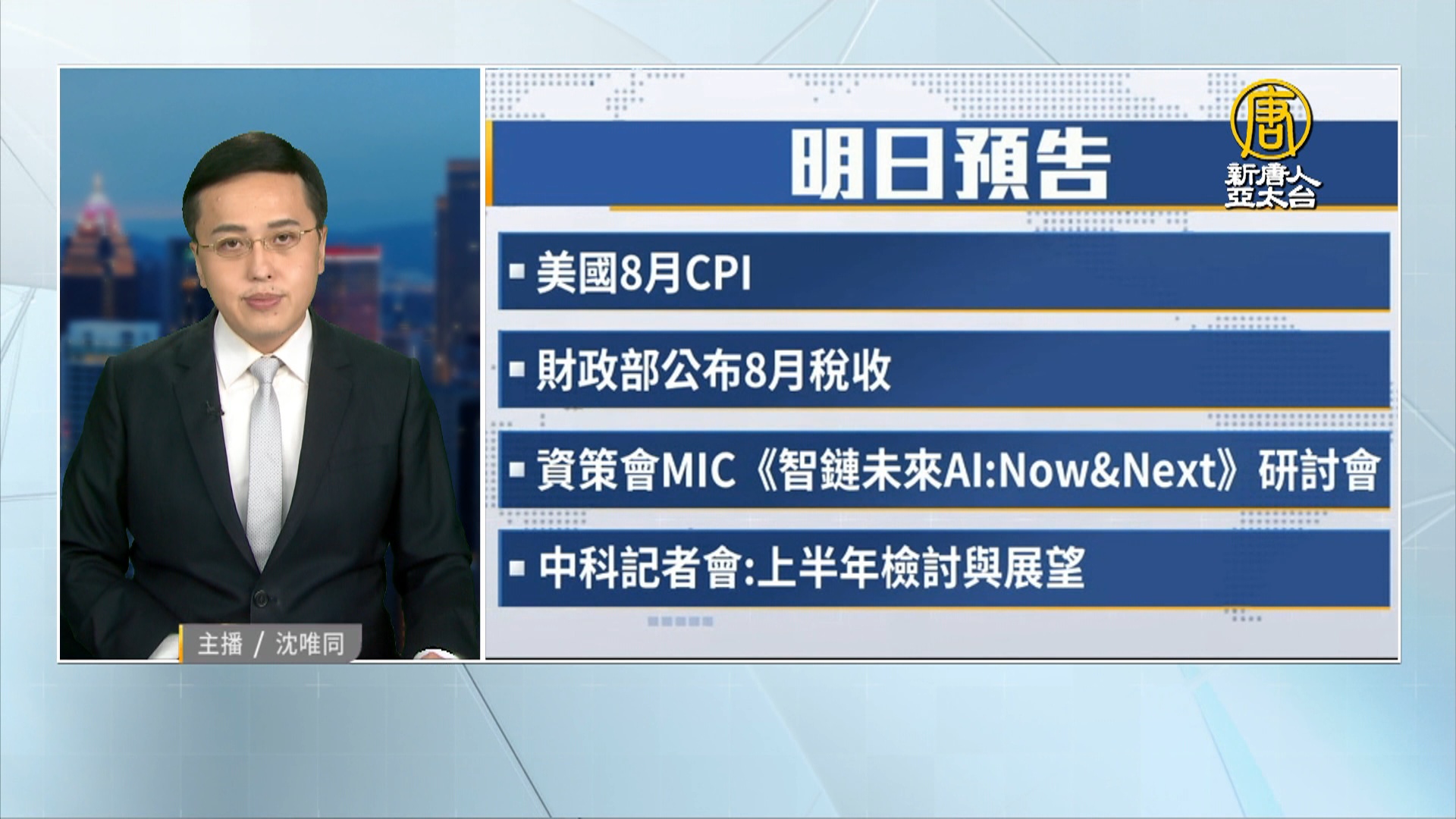 台灣財政部公布8月稅收,資策會MIC舉行AI研討會。中科舉行記者會。