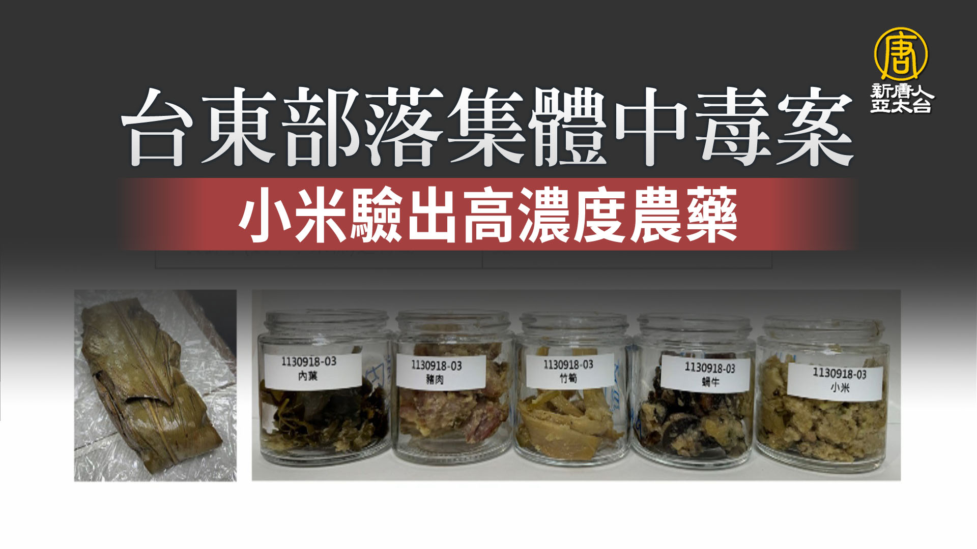【新唐人亞太台 2024 年 09 月 20 日訊】再來關心,台東縣賓茂部落疑似食物中毒事件,造成三人死亡、四人還在加護病房救治當中。為釐清死者死因,法醫研究所今天(20日)抵達台東殯儀館,進行遺體解剖程序。而衛福部檢驗多項「食餘」檢體,在小米、內葉中驗出農藥托福松,其中小米內的農藥濃度反應最高,為405ppm。另外衛福部也針對其它六項檢體,包括剩餘的小米粉與調味料進行檢驗。