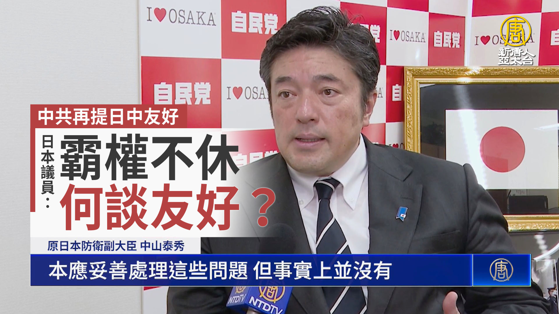 【新唐人亞太台 2024 年 09 月 30 日訊】週二,十一國殤日,是中共竊政75週年,中共駐日大使館最近找來日本政要出席宴會,宣揚「日中友好」很重要。不過,前日本防衛副大臣中山泰秀表示,真正的友好,是建立在遵守承諾的基礎上。