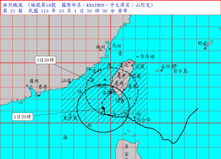 強颱山陀兒龜速 10月2日全台22縣市全部停班課(照片來源:中央氣象署)