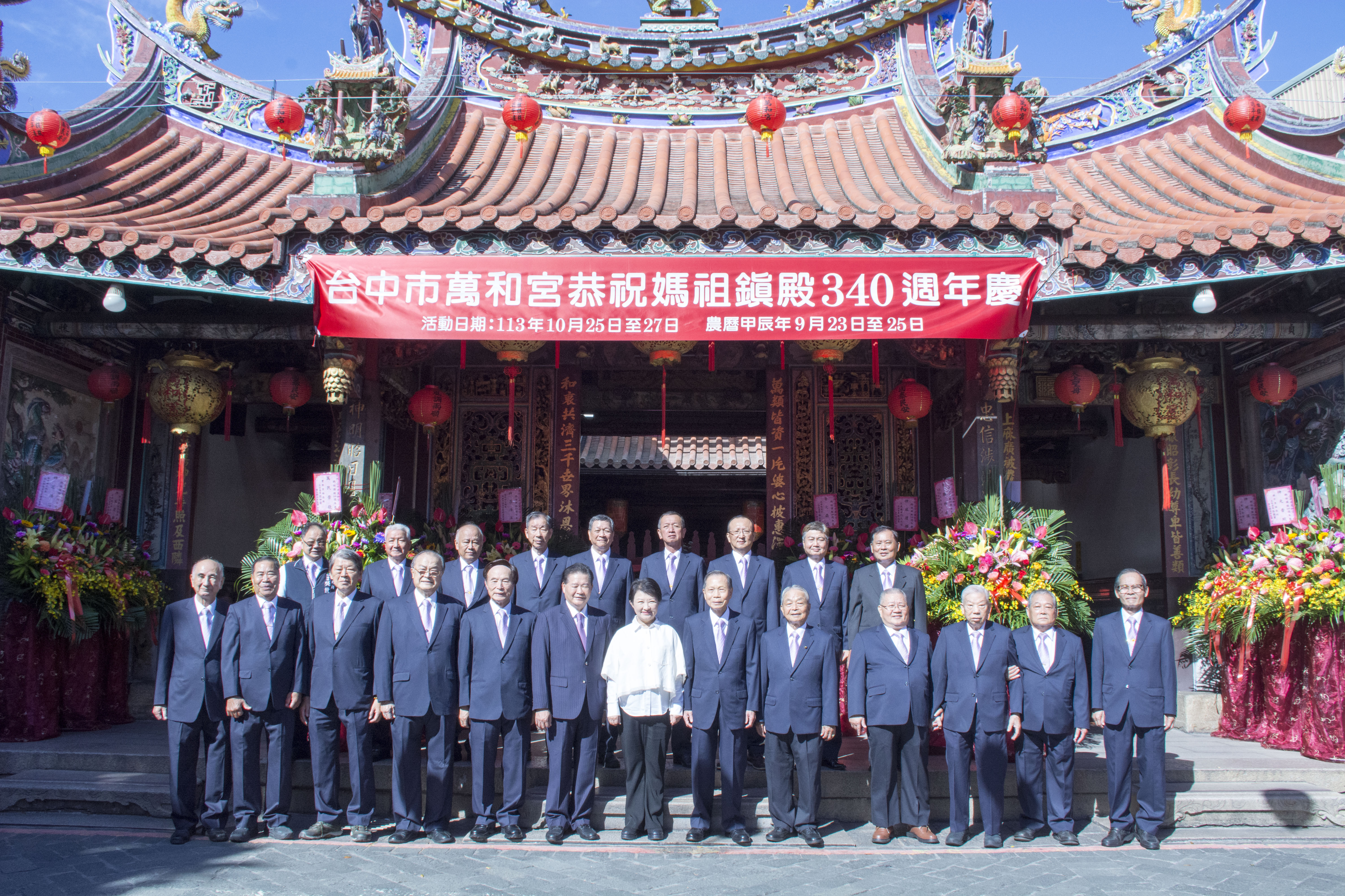慶祝大會上午在萬和文化大樓毓德堂舉行,台中市長盧秀燕到正殿參拜後說,萬和宮媽祖鎮殿340周年,是個大日子,她代表全市285萬多市民及市府團隊前來祝賀。祝賀媽祖鎮殿340週年,並祈求保佑風調雨順、國泰民安,國運昌隆,市政順暢,造福市民。