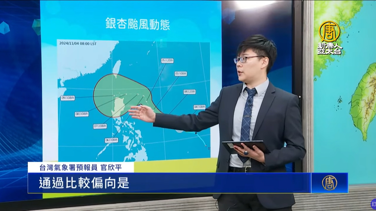 【新唐人亞太台 2024 年 11 月 04 日訊】新聞開始先來關心,今天(4日)清晨,在太平洋海面,生成今年第22號颱風銀杏。未來是否影響台灣,關鍵時間點落在6日,行進方向如果直撲台灣,恐怕會跟東北季風,形成共伴效應。而今天傍晚開始,北部就會明顯感受到東北季風威力,5日天氣持續轉涼,全台有感,台灣北部及東北部地區,還會有局部較大雨勢發生。