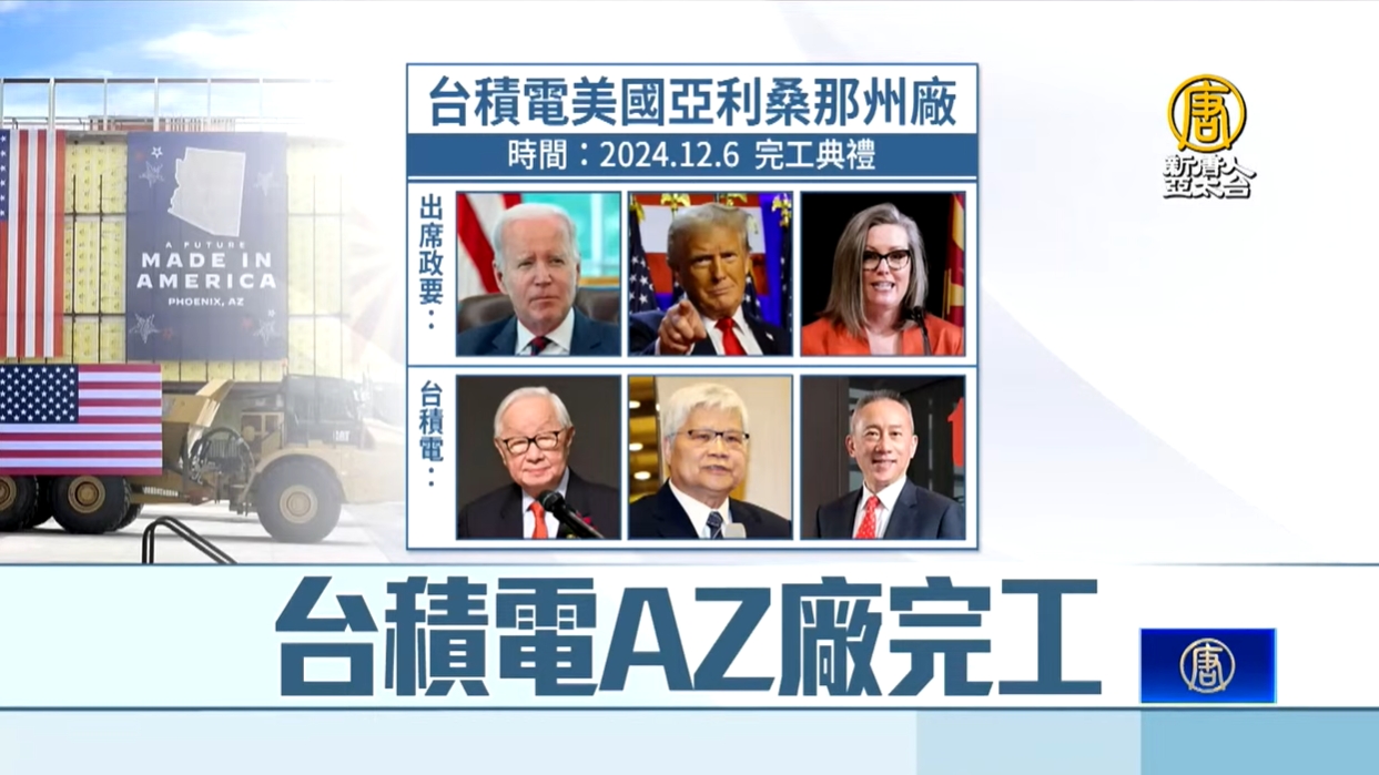 【新唐人亞太台 2024 年 11 月 12 日訊】台積電美國亞利桑那州廠,下個月就將舉行完工典禮,媒體報導,準總統川普也將親自出席見證。