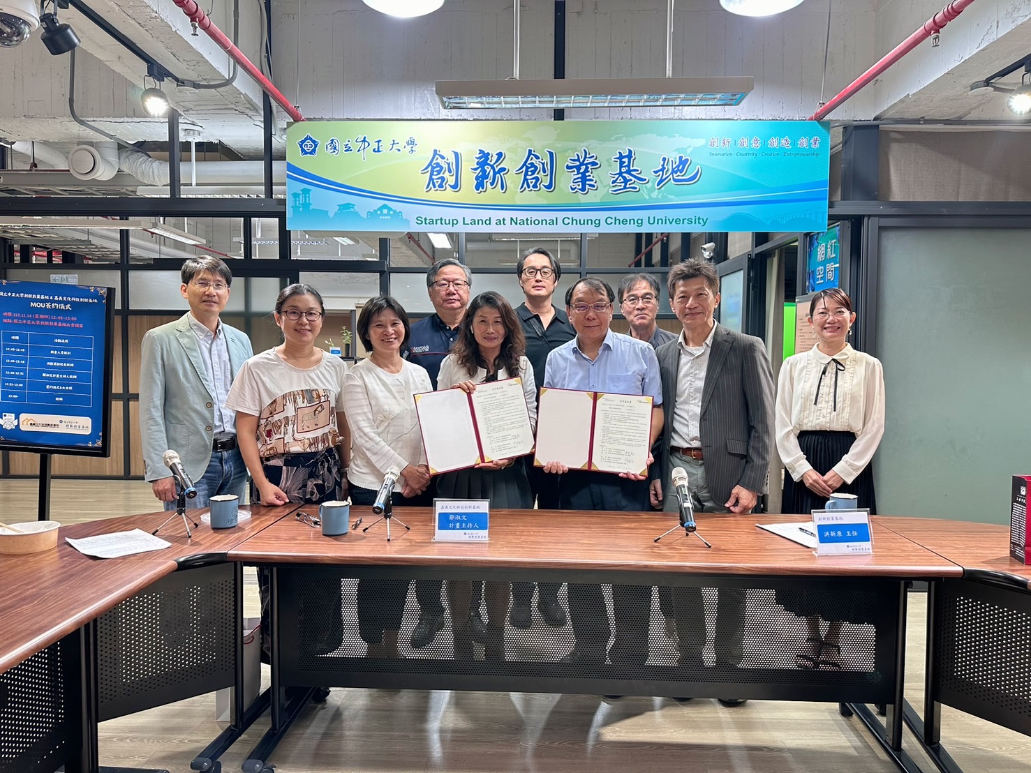 中正大學創新創業基地14日與嘉義文化科技創新基地簽署合作備忘錄。(中正大學提供)