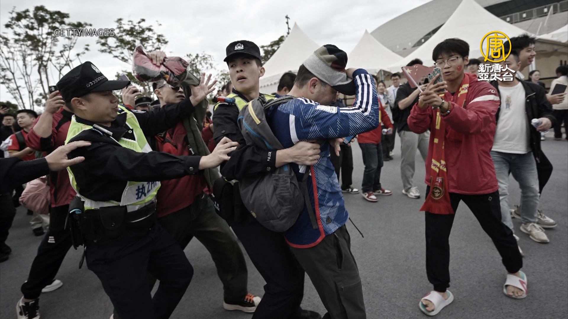 【新唐人亞太台 2024 年 11 月 20 日訊】再來看到,世界盃足球亞洲區第3輪資格賽,中國與日本昨晚移師廈門再戰。中國上一次在客場以0比7敗給日本後,今晚在主場,最後以1比3輸給日本,然而,有一名身穿日本隊球衣的男子,昨天下午遭中國球迷圍堵推擠辱罵,還被中共警察強行脫下球衣。之前中國出現仇日攻擊事件,也讓這場中日賽事格外敏感。