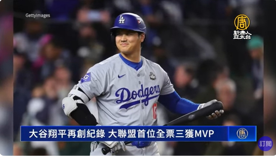 【新唐人亞太台 2024 年 11 月 22 日訊】歡迎回來,日籍球星大谷翔平,以前所未有的單季50轟50盜的成績,在週四(21日),獲選美國職棒大聯盟年度最有價值球員。