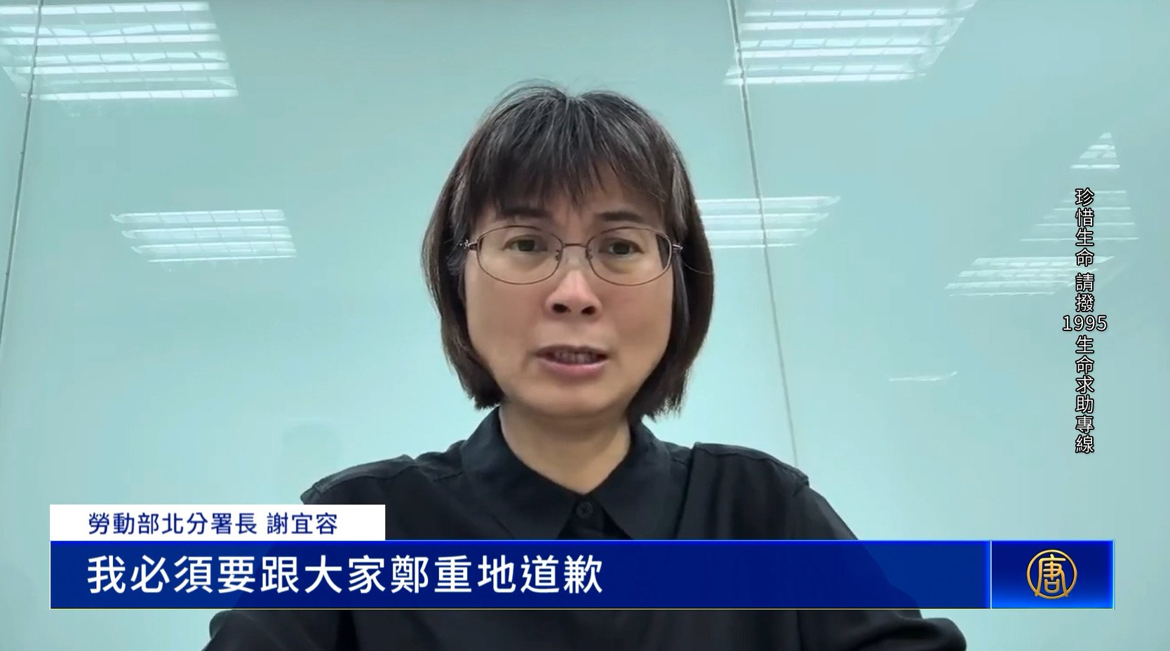 勞動部北分署長 謝宜容:「我非常非常地自責,我必須鄭重地向大家道歉。」
