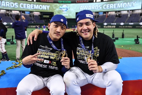 台灣棒球世界12強奪冠,屏東在籍選手吳俊偉(左),屏東縣政府宣布加碼頒發獎金70萬元(屏東縣府 提供)