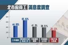 2015-11-10 20:17:43台北市政府進行員工滿意度調查,結果顯示,有超過一半的北市府員工認為,工作壓力造成生活上困擾,有4成的人想離開目前的工作機關,近3成未來可能不當公務員,台北市長柯文哲的內部員工滿意度,則是低於各局處首長。