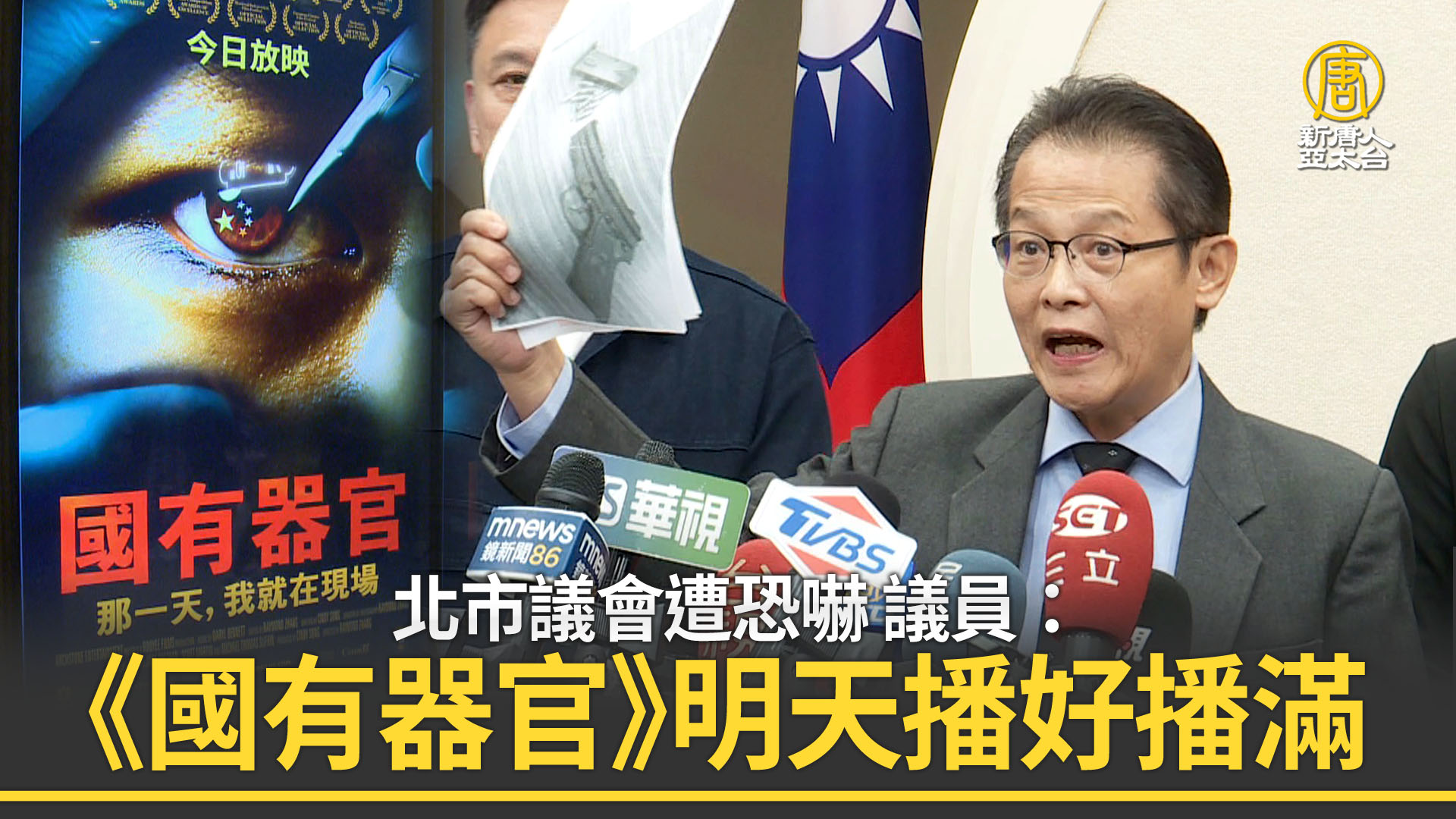 【新唐人亞太台 2024 年 11 月 29 日訊】得獎紀錄片《國有器官》,揭露中共活摘器官的惡行,在台灣戲院與地方議會放映,卻接連遭到恐嚇!而明天(30日)台北市議會即將播映,市議員洪健益等人召開記者會指出,收到被威脅要闖入議會砍人的消息,洪健益表示已經報警和提告,一定會讓電影播好播滿。
