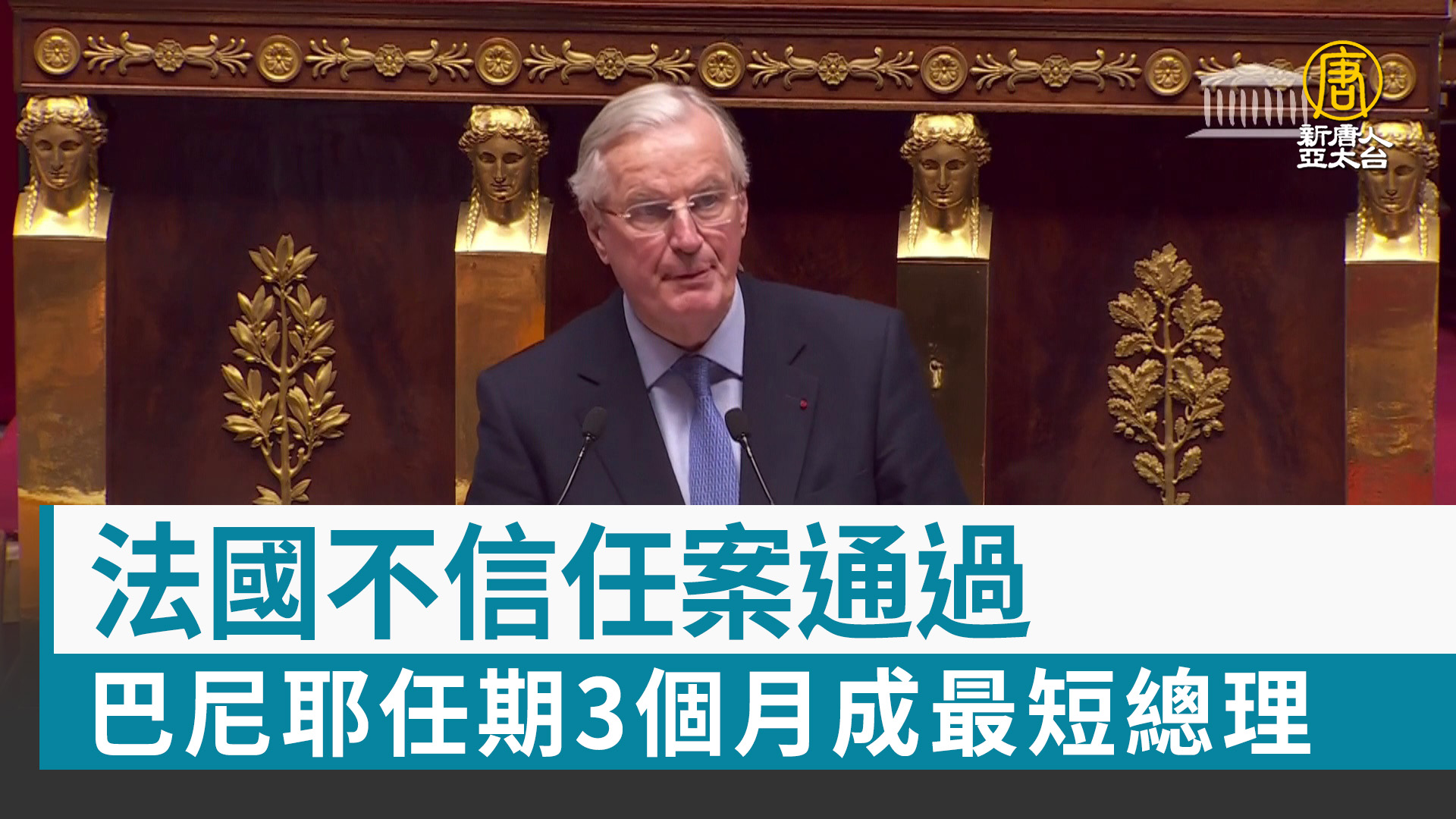4日,法國國民議會以288票對331票過半,通過總理巴尼耶(Michel Barnier)的不信任動議,為62年首見,也讓巴尼耶成為了短短3個月就倒台的法國總理。