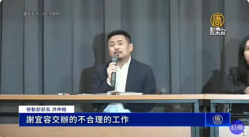 勞動部部長 洪申翰:「根據我們的調查,以及在分署內大量的同仁的訪談,謝宜容就任北分署以來,確實存在著管理模式的高度的不當。吳姓公務員是否有遭受到霸凌?就我們釐清的事實,包括透過大量的訪談,內外部的委員都認為,這就是有霸凌的狀況。吳姓公務員的輕生跟謝宜容交辦的不合理的工作,以及謝宜容所造成的更惡劣的工作環境,當然是有關聯的。而檢調確實也請勞動部針對,這個謝宜容她在經費的使用或者是標案採購上面,針對這部分,希望我們先暫緩調查,先讓檢調來做調查,所以貪瀆與否的問題,不在這一次的行政調查報告的範圍內。這一次在這個調查,重啟調查的結果公佈後,我們也會把負責資訊小組的中間的直接主管,秘書室的劉主任,調離現職,調到非主管職。我還是要代表勞動部,再一次的,向吳姓公務員的家屬表達,最深的歉意。」