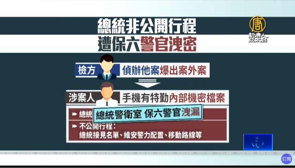 【新唐人亞太台 2024 年 12 月 19 日訊】再來看到,負責總統維安的一名保六總隊警官,今年5月借調國安局特勤中心後,近來被檢調發現,他涉嫌將總統賴清德的不公開行程,洩漏給民間友人,目前已遭聲押獲准,保六總隊也對這名人員停職處分。總統府發言人表示,國安局及總統府會依法懲處,絕不寬貸。總統府也將持續強化保防宣導,以提升國家安全防衛意識,加強防杜不法行為。