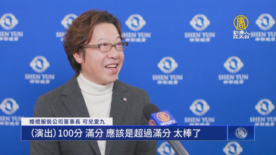 婚禮服裝公司董事長可兒愛九:「(演出)100分,滿分,應該是超過滿分,太棒了。(演出)精彩至極,美麗奪目,舞台服裝也很出色,與音樂完美融合,我感動了。」
