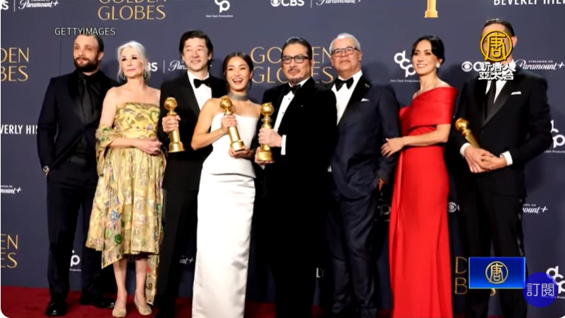 【新唐人亞太台 2025 年 01 月 06 日訊】歡迎回來,全球娛樂盛會,一年一度金球獎頒獎出爐,《幕府將軍》擊敗《魷魚遊戲2》奪下最佳影集獎,同時真田廣之以《幕府將軍》奪下戲劇類影帝,女星澤井杏奈也以此劇奪下影后,寫下史上第一次亞裔演員包辦影帝后的全新紀錄,加上淺野忠信也奪下最佳男配角,讓《幕府將軍》成為影集類大贏家。另外,音樂喜劇類影后由黛咪摩爾拿下,而被稱為死亡之組的戲劇類影后,則由巴西女演員費南妲托雷斯拿下,打敗了勁敵,安潔莉娜裘莉、妮可基嫚、蒂妲史雲頓,以及,凱特溫斯蕾,等眾多強敵。