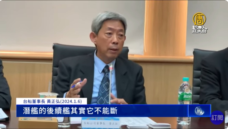 台船董事長 黃正弘(2024.1.6):「潛艦的後續艦其實它不能斷,至於用什麼形式的話台船沒有意見,就是說我們只要能夠參與潛艦的製造。所以潛艦後續艦的經費假如斷的話,這些人、這些設備、甚至那些主要裝備廠商都跑掉了。」