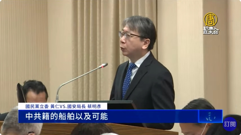 國民黨立委 黃仁VS.國安局長 蔡明彥:「中共籍的船舶以及可能中共的船舶掛到第三國權宜輪這種名義,到周邊海運活動的狀況,這部分是我們接下來主要查處跟蒐集情資的重點。」「你們肯定就是大部分都是中共進行破壞,有沒有其它的外力、國際的破壞?」「少數、非常少數,那大部分是外力或不明原因的,這部分比例比較低。」
