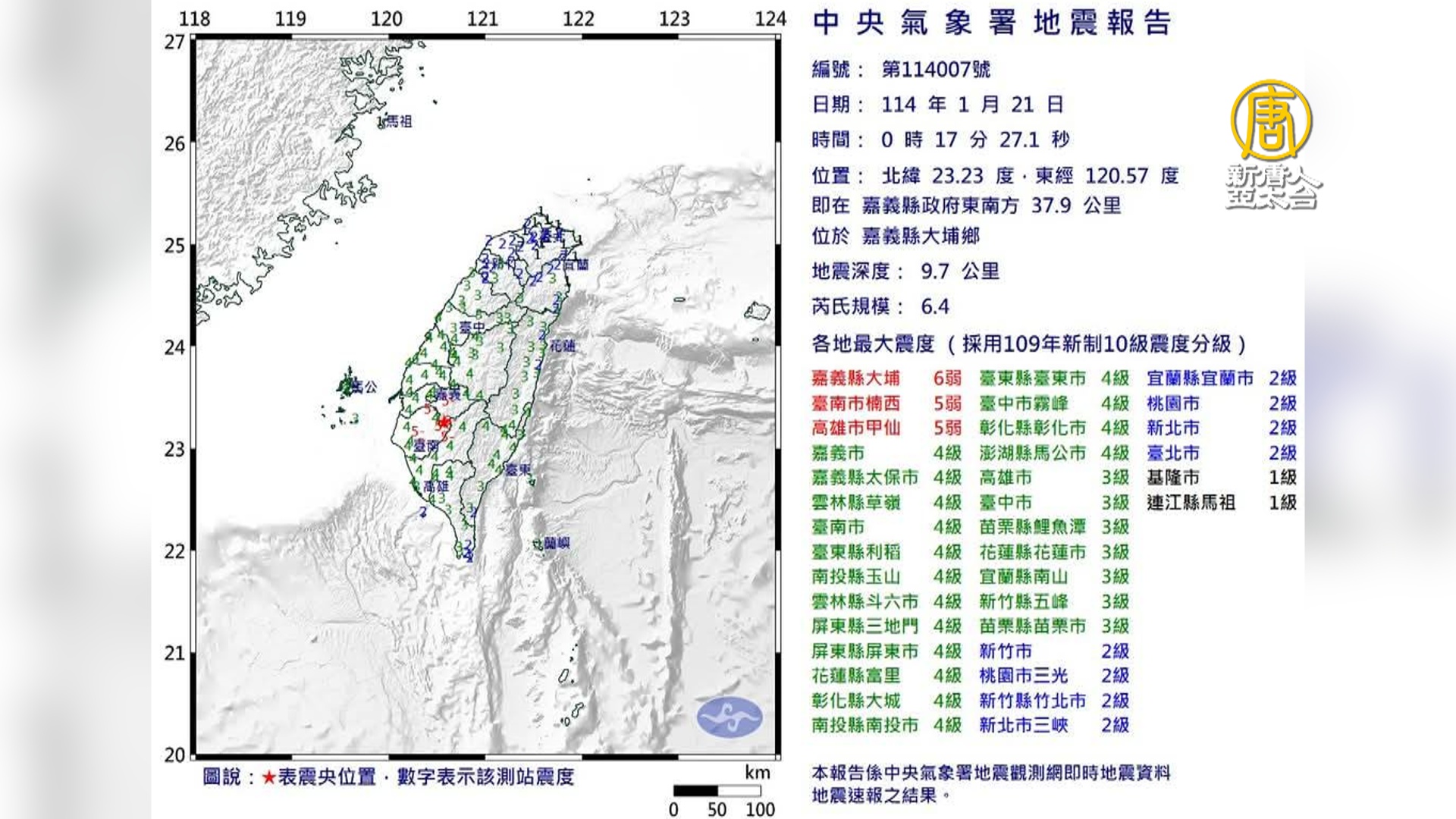 2023-08-17 07:40:02早安新唐人先帶您關心,嘉義地區昨夜發生規模4.0的極淺層地震,深度只有9.2公里,許多人在睡夢中被驚醒,值得注意的是,這個淺層地震的震央在嘉義縣新港鄉,但最大震度4級卻在嘉義市及嘉義縣民雄鄉,而且影響範圍並不大,以嘉義縣、市為主,雲林縣、彰化縣、南投縣、台中市、高雄市與台南市震度為1到3級。嘉義縣、市消防局指出,這起極淺層地震目前還沒有傳出災情。