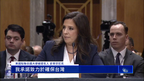 【新唐人亞太台 2025 年 01 月 22 日訊】川普2.0內閣陸續就位,長期在國會力挺台灣的眾議員史蒂芬尼克,被提名出任駐聯合國大使。週二(21日)參議院任命聽證會上,她承諾會確保台灣能夠最大程度參與國際組織。