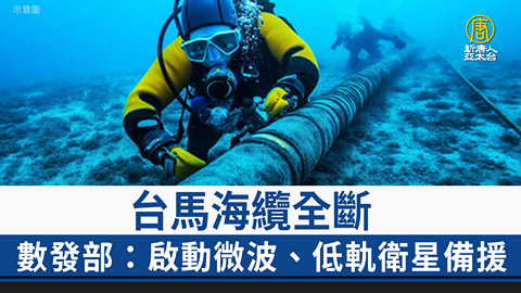 【新唐人亞太台 2025 年 01 月 22 日訊】台灣與前線離島馬祖之間的海底電纜,過去就曾遭破壞。兩條海纜今天(22日)凌晨中斷。數位發展部表示,最快在2月完成電纜修復,目前已請中華電信,啟動微波與衛星備援,確保通訊。