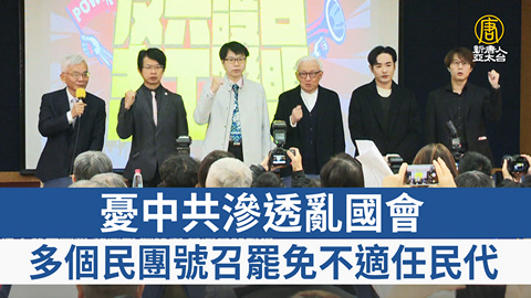 【新唐人亞太台 2025 年 01 月 22 日訊】憂心中共滲透台灣的國會,製造亂象、弱化台灣。民間發起罷免不適任立法委員的行動,今天(22日)多個民團聯合召開國際記者會,表達抗共保台的訴求,並示警中共對台野心。