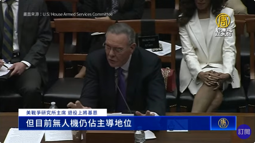 美戰爭研究所主席 退役上將基恩:「這是一個很簡單的選擇,議員先生。答案會是無人機。」「但就像每種新技術一樣,無人機最終會(遭遇)有有效反制措施,但現在還沒有,我的意思是,微波、定向能和其他技術都在實驗中,但目前無人機仍佔主導地位。」「我參與過多數的兵棋推演,來應對最危險的情況,就是中共入侵的情況。要阻止中(共)國,我們不是說要打敗他們,而是要阻止他們,這需要(對中共軍力)造成10%到15%的影響,抱歉不是,是要造成15%到20%的影響;這些潛航器與海上自主飛行器,就可以產生15%到20%的影響。」