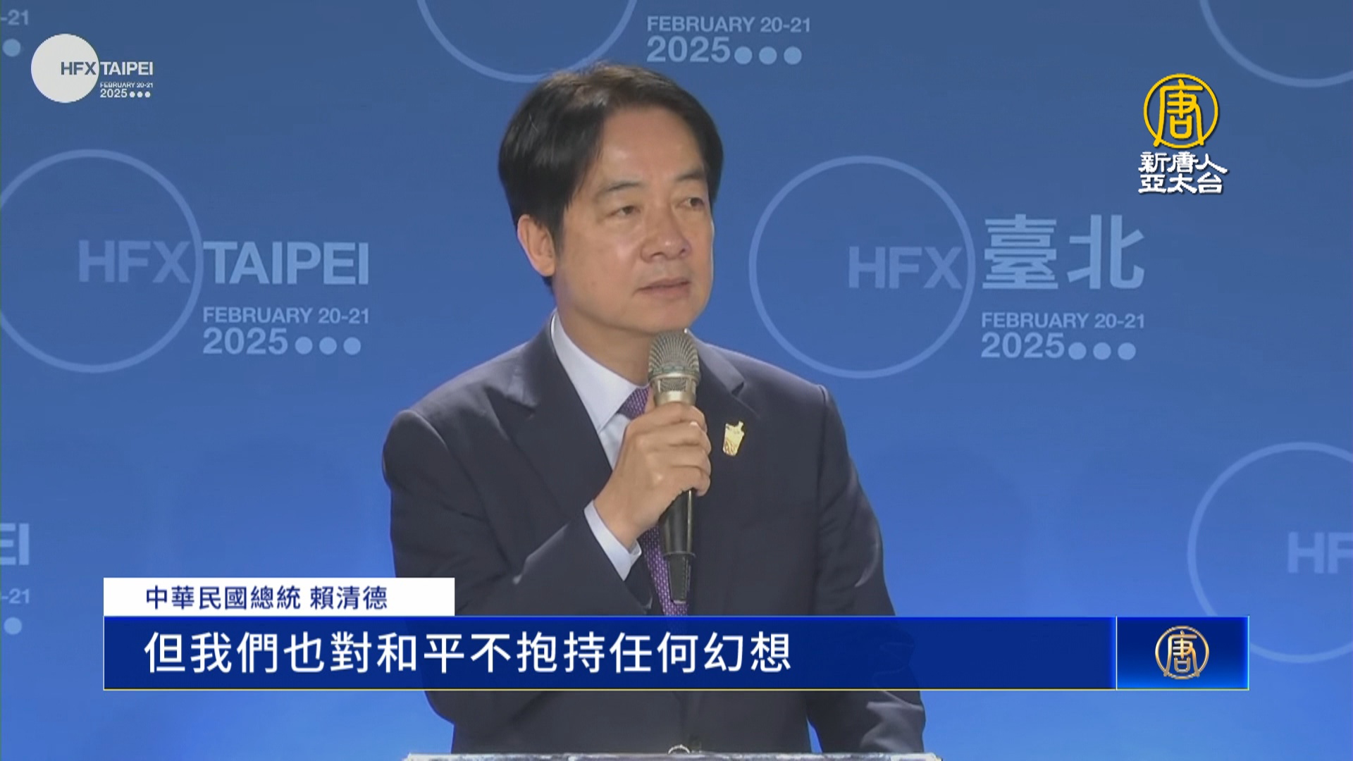 【新唐人亞太台 2025 年 02 月 20 日訊】哈利法克斯國際安全論壇,今天在台北登場,這次也是首度在台灣舉行。包括白宮前副國安顧問博明、日本前首相安倍晉三的遺孀安倍昭惠、加拿大前防長馬凱等國內外政要出席。中華民國總統賴清德在開幕致詞表示,台灣將以實力追求和平。