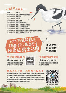 縣府表示,活動當天設置超過40個攤位,包括在地美食、文創商品、光電相關資訊及生態宣導等,還安排專業解說員賞鳥解說、濱海植物導覽及生態保育短講等豐富活動,寓教於樂,適合親子一起來體驗。