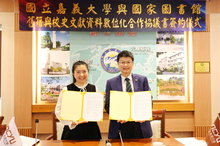 嘉大與國圖簽署MOU 共推舊籍.校史文獻保存(嘉大提供)