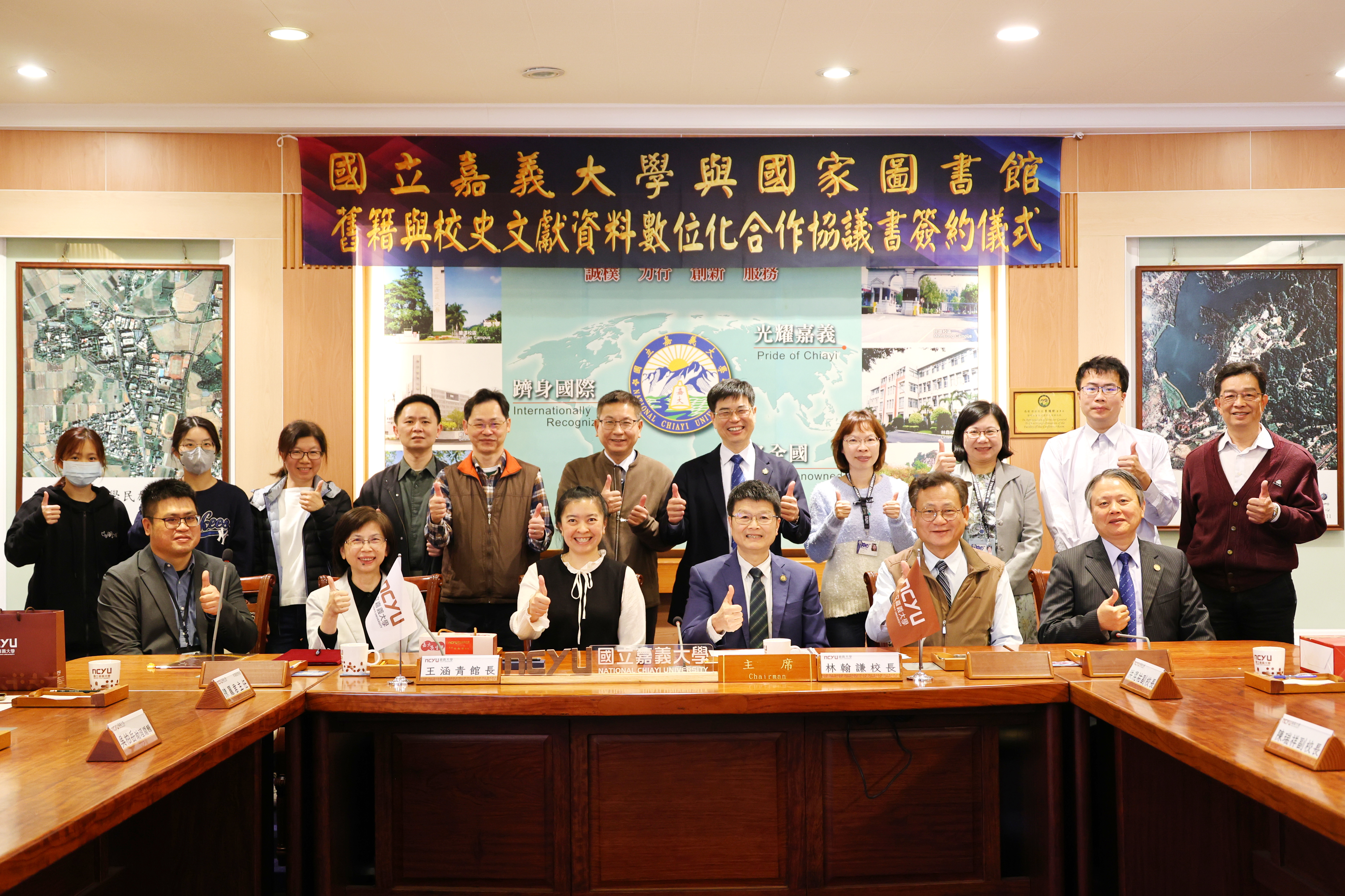 嘉大校長林翰謙表示,嘉大擁有百年歷史,珍藏豐富的校史文獻,不僅紀錄了日據時期的各項發展史,也是台灣高等教育大學校院整合成功的首例與典範。國家圖書館自2002年起,即積極推動各類館藏資料的數位化典藏計畫,累積深厚的經驗與專業能力。此次合作提供嘉大寶貴的技術支援,確保珍貴文獻得以長久保存並廣泛應用。