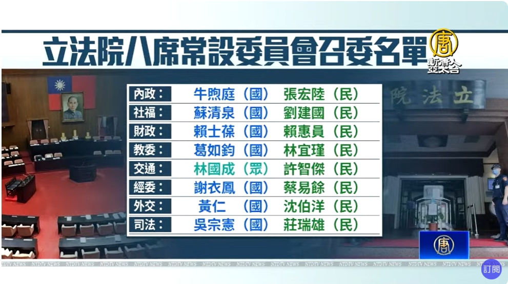 【新唐人亞太台 2025 年 03 月 05 日訊】再來看到,立法院常設委員會今天(5日)進行召委選舉,民進黨取得八席、國民黨取得七席,並禮讓交通委員會召委給民眾黨。