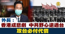 外長:香港成悲劇.中共野心遠過台灣.攻台必付代價