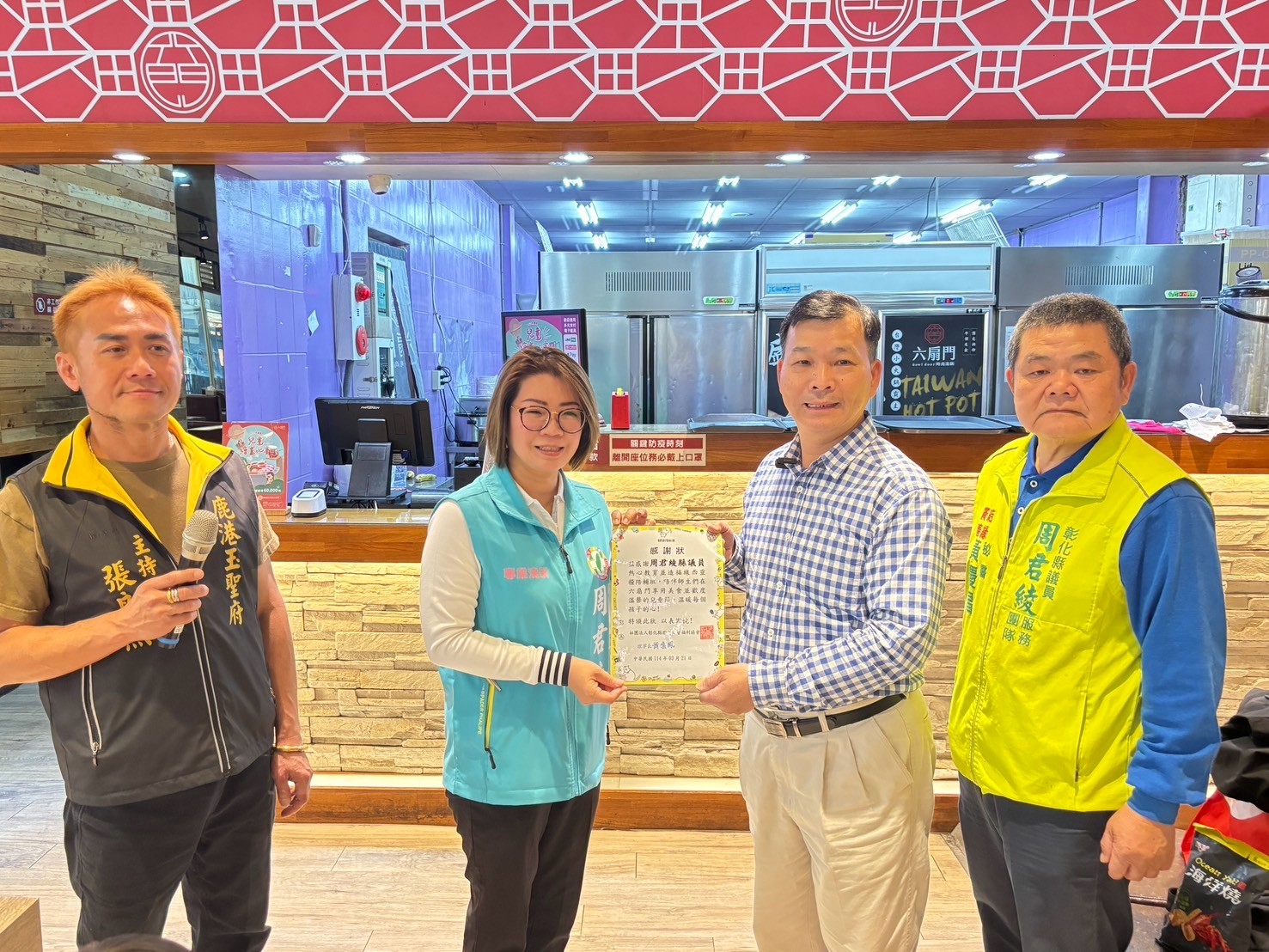 線西靈糧之家頒發感謝狀給縣議員周君綾。(彰化縣議員周君綾辦公室提供)