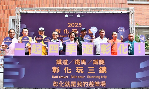 【新唐人亞太台 2025 年 03 月 24 日訊】彰化縣政府於今天(24日)上午在警察局中庭舉辦「彰化玩三鐵宣傳記者會」,縣長王惠美與會表示,「彰化玩三鐵」就是民眾搭台鐵、高鐵來彰化,再以鐵馬或用雙腳的方式,遊覽彰化的風景,讓鄉親玩到鐵腿,深入體驗在地文化與自然風光,實踐「彰化就是我的遊樂場」!