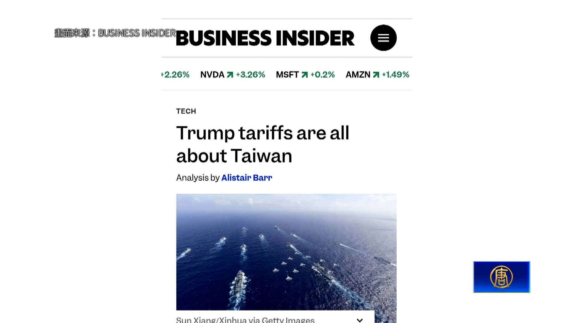 【新唐人亞太台 2025 年 04 月 08 日訊】7號,美國媒體《商業內幕》,以「川普關稅與台灣密切相關」為題,引述知名美國科技電子報作者湯普森觀點。他指出,川普的關稅,可能是要應對中共入侵台灣的可能性。他表示,一旦中共入侵台灣,中共將被排除在全球供應鏈體系之外,台灣的經濟產出,包括台積電的晶片,也都將被摧毀。他指出,一場對台灣的戰爭,將讓疫情和川普關稅帶來的衝擊「相形失色」。與其在戰爭中看著現有經濟體系崩潰,現在就減少對中國的依賴,重新振興美國的製造業是否更好?他表示,雖然川普的全面關稅手段粗糙,但仍是能夠實質重塑全球機制的方法。