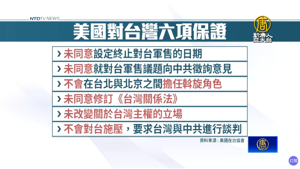 【新唐人亞太台 2025 年 05 月 16 日訊】再來看到,美國眾議員克利什納穆希、和金映玉今天提出「對台六項保證法案」,要求將六項保證明文列為美國政策,並在國會建立審查機制,確保未來任何政府,在未經國會批准下,不得更改這些原則。「六項保證」包括:美國未同意設定終止對台軍售的日期,未同意就對台軍售議題,向中共徵詢意見,美國不會在台北與北京之間擔任斡旋角色,未同意修訂《台灣關係法》,未改變關於台灣主權的立場,美國不會對台灣施壓,要求台灣與中共進行談判。議員金映玉指出,這項法案清楚表明,美國重視與台灣的夥伴關係。「在我們共同面臨來自中共的經濟和安全威脅之際,這一點比以往任何時候來得更重要。」