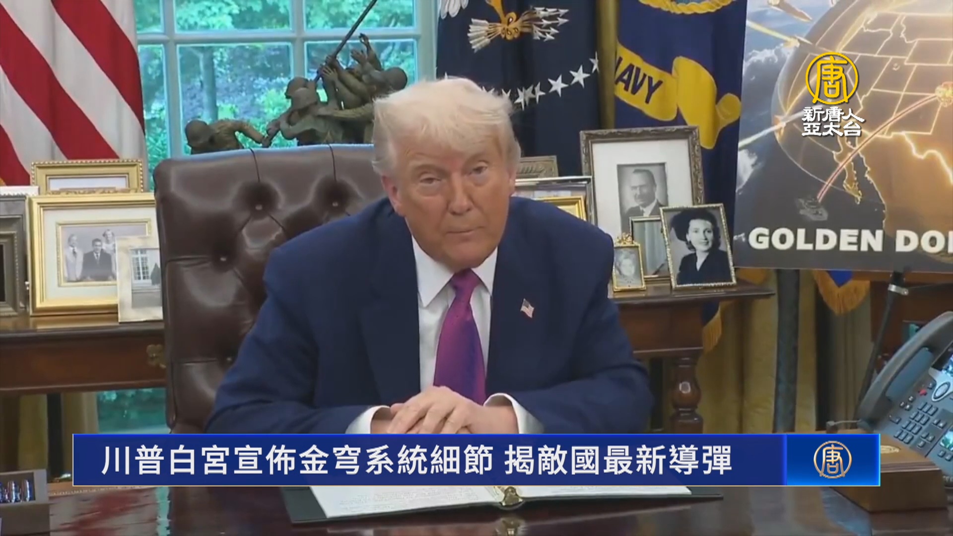 【新唐人亞太台 2025 年 05 月 21 日訊】歡迎回來,美國總統川普週二美東週二宣布,將打造「金穹防禦系統」,這項系統可攔截全球任一方向來襲的飛彈或高超音速武器,攔截成功率達100%。總造價為1750億美元,計畫三年內建成,且完全由美國自己製造。請看我們白宮記者的報導。